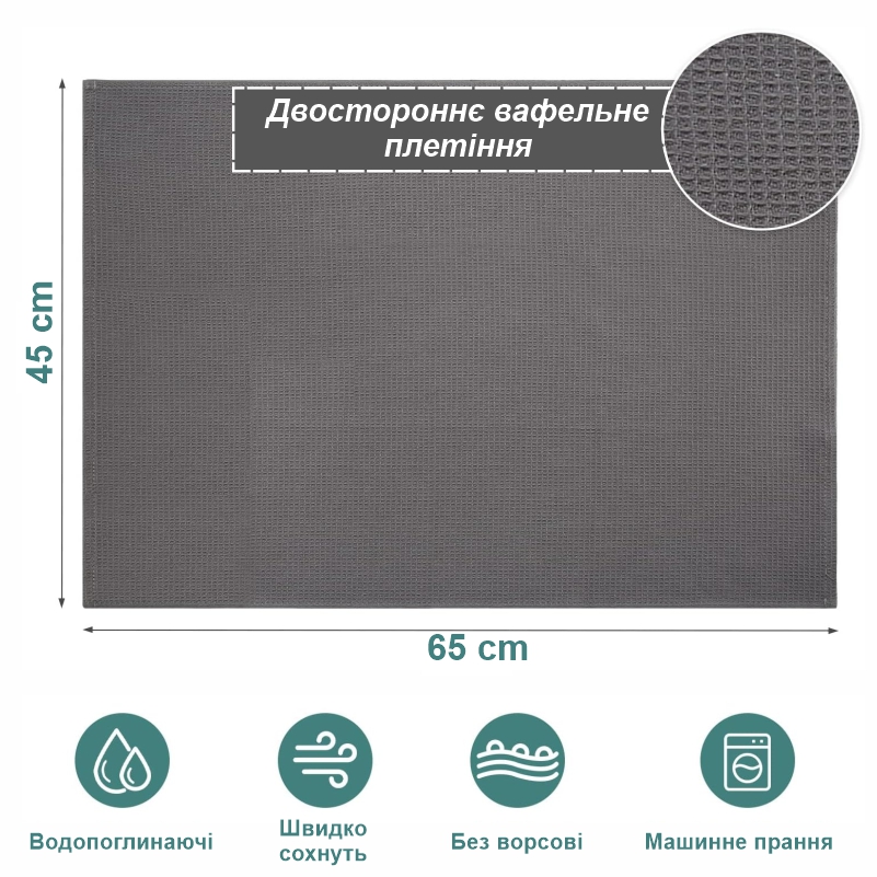 - Легкий догляд: кухонні рушники можна прати в машині з холодною водою, делікатним циклом, щоб мінімізувати усадку. Не відбілювати. Усадка 12-15% після прання – норма для вафельного плетіння.