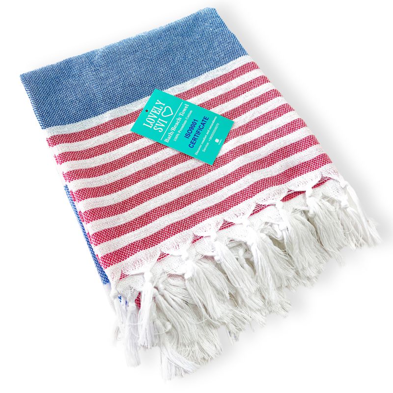 Рушник пештемаль Lovely Svi бавовняний, пляжний, хамам, spa - XХL 100x180 см Blue/Red Stripes
