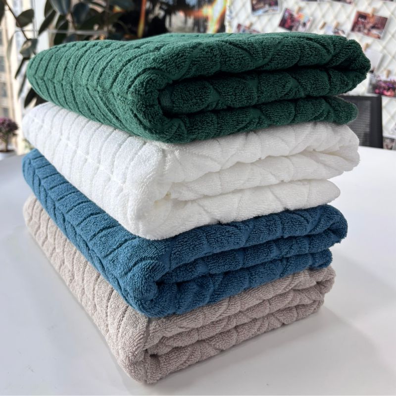 Двустороннее жаккардовое плетение, используемое в этих банных полотенцах, обеспечивает нежное прикосновение к телу и обладает высокой поглощающей способностью.