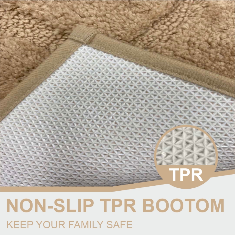 Нескользящая подкладка - Коврик для ванной комнаты разработан с прочной подкладкой TPR (резина), чтобы предотвратить смещение и скольжение.