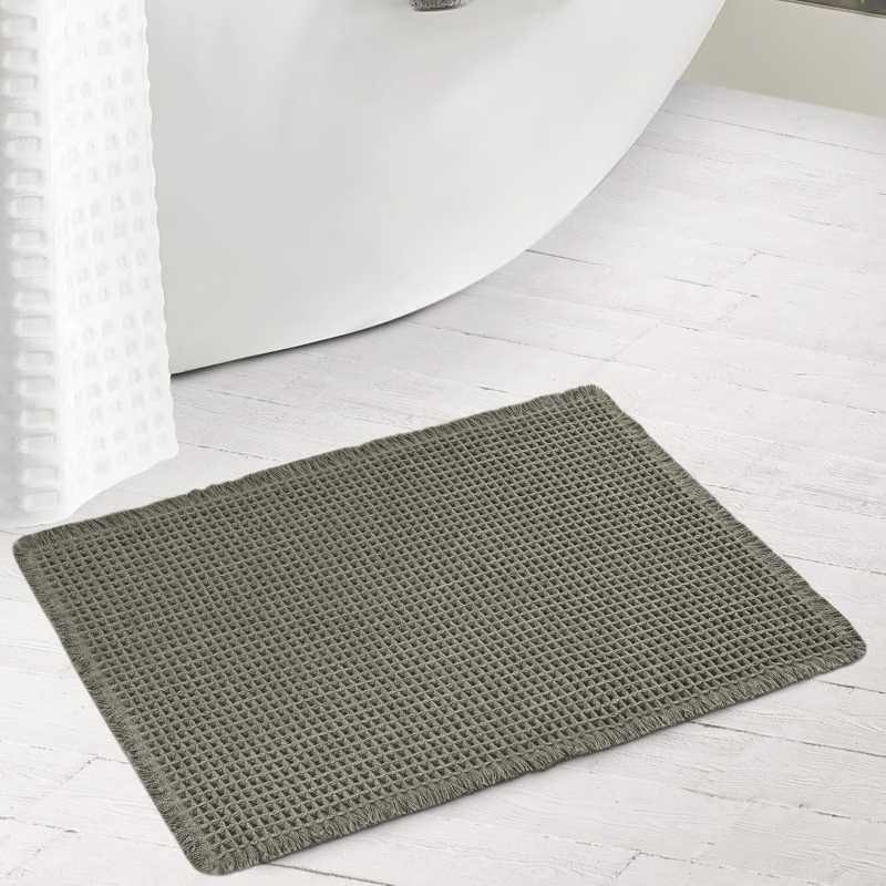 - Супермягкий и впитывающий – изготовлен из микрофибры, плотность 1000 г/м2, вес 400 грамм. Вафельный коврик для ванной очень мягкий, крепкий и быстро поглощает воду.